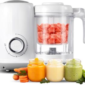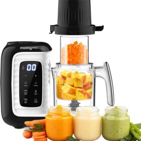 MOMYEASY Baby Food Maker, Multifunction Processor Chopper Grinder, Baby Food Steamer and Puree Blender in-One, with Bottle Warmer, Auto Cooking & Grinding with Touch Control Panel&Self Cleans (Black)