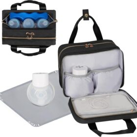 Wearable Breast Pump Bag with Insulated Breastmilk Cooler – Compatible with Momcozy/Willow/Elvie/Spectra/Medela, Portable Pumps Carrying Case with Waterproof Mat for Working Mom