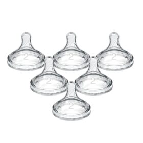 Dr. Brown’s Natural Flow Level 2 Wide-Neck Baby Bottle Silicone Nipple, Medium Flow, 3m+, 100% Silicone Bottle Nipple, count 6 (Pack of 1)