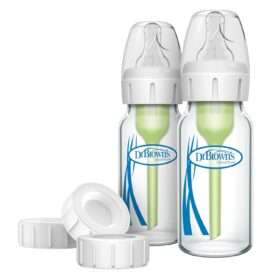 Dr. Brown’s Natural Flow Anti-Colic Options+ Narrow Glass Baby Bottle 4 oz/120 mL & Travel and Storage Baby Bottle Caps for Natural Flow and Options+ Baby Bottles – 3-Pack