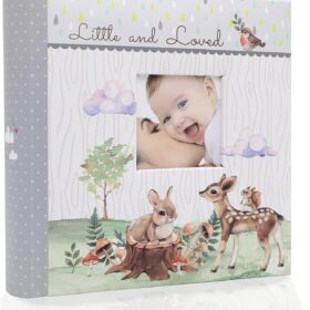 This sewn leatherette cover album features a frame collage and embossed “Baby” design. The album holds 200 photos up to 4″x6″ in optically clear pockets with shaded paper backgrounds and memo writing areas. Photos are displayed two per page. The album measures 8.875″x9″x2.125. Photo Safe: Acid, lignin and PVC free. […]