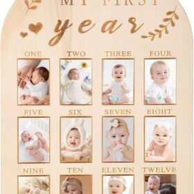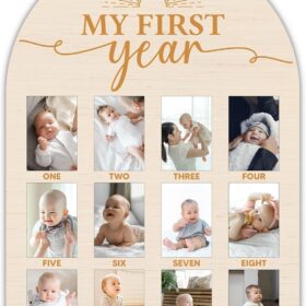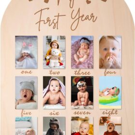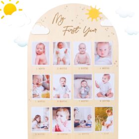 Product description Precious Memories: My first year photo board is a stylish way to record monthly milestones and can be used as a permanent keepsake to cherish those early memories. This is perfect for baby’s first birthday party to show how much your baby has grown and all the changes
