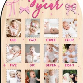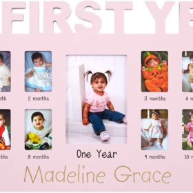 Let’s Make Memories Personalized Baby’s First 12 Months Photo Frame- New Parents- Newborn- Nursery – Pink