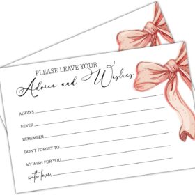 Set Of 25 Wishes And Advice Cards, Pink Bow Fill-In Style Advice Cards For Bridal Shower Birthday Party Baby Shower Graduation, Well Wishes For The Mr And Mrs New Parents Baby -03