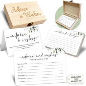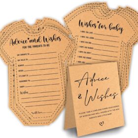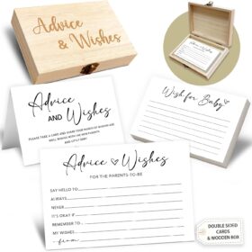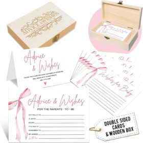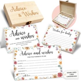 Baby Advice Cards for Baby Shower: The perfect baby shower party activity! Use these advice cards for new parents as a fun game, heartfelt wish cards, or even as a unique guest book alternative. They also make charming reception table decorations.Set Includes: A baby advice and wishes box, 50 double-sided […]