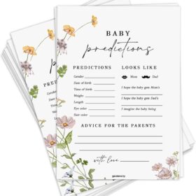 Baby Shower Advice Cards For Parents To Be, 50 Psc Advice and Wishes Card in Box For New Parents Baby Shower Game Decorations Memory Guest Book(Wildflower) -A02