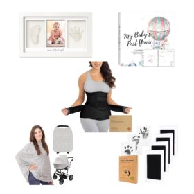 KeaBabies 3in1 Postpartum Belly Band with Infant Hand and Footprint Frame, Baby Memory Book, 4-Pack Inkless Ink Pads, and Multi-Use Nursing Cover – Thoughtful Keepsake and Care Gift Set for Moms