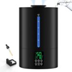 6L Humidifiers for Bedroom Large Room Home, Cool and Warm Humidifier for Plants Mist Top Fill Desk Humidifier Essential Oil Diffuser, Quiet Humidifiers with Adjustable Mist,360°Nozzle-Black