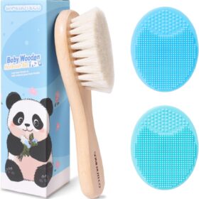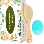 Wooden Soft Goat Bristles Brush with Baby Silicone Hair Scrubber Cradle Cap Brush for Newborns, Toddlers, Infant, Baby Hair Care Kit (Green)