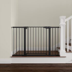 Baby Gate Extra Wide, 29.5-51” Pressure Mounted Dog Gate with Walk Thru Door, Auto Close Pet Gate for House, Stairs, Doorways,Black