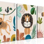 AKWISH Safari Jungle Nursery Wall Decor Set of 3 – Framed Animal Canvas Wall Art for Baby Room, Toddler Boy or Girl Bedroom, Cute Safari Themed Baby Nursery Decor 12x16in