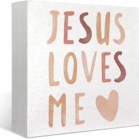 Baby Girls Boys Nursery Decor – Jesus Loves Me Christian Wood Box Sign Decoration, Boho Neutral Bible Verse kids bookshelf Decorations, Toddler Girls Room Decor 5×5