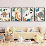 FJKLRP 4pcs Safari Nursery Wall Art Zebra elephant tiger monkey Pictures Poster Cute Animal Canvas Paintings Prints Decor for Kid Room Baby Room Wall Decor Unframed