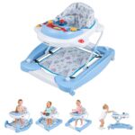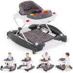 INFANS Baby Walker, 5 in 1 Behind Walker Learning Seated Rocker Bouncer with Removable Music Tray, Adjustable Height, Washable Seat Cushion, Foldable Activity Center for Toddlers (Grey)