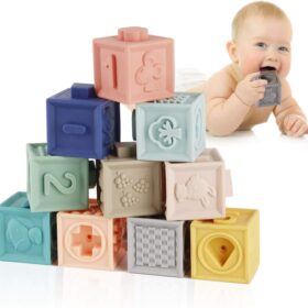 Mini Tudou Baby Blocks Soft Building Blocks Baby Toys Teethers Toy Educational Squeeze Play with Numbers Animals Shapes Textures 6 Months and Up 12PCS