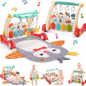 CuddoBaby Baby Bouncer 4-in-1 with Wheels, Detachable Piano, Feeding Tray, Play Bar, Thick Base. 3-Level Incline Portable Seat for Infant to Toddler 0-6, 0-12, 12-24 Months, Upto 29Lbs – Blue
