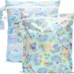 Bumkins – Waterproof Wet Bag – For Baby, Travel, Swim Suit, Cloth Diapers, Pump Parts, Pool, Gym, Toiletry, Strap to Stroller – Reusable & Easy to Clean – 2pk – Disney Stitch