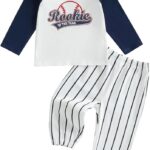 Baby Boys First Birthday Outfit Rookie of the Year Baseball Shirt and Striped Pants Set 1st Birthday Clothes