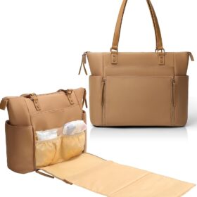 MOMINSIDE Neoprene Diaper Bag Tote, Diaper Bag Backpack pañaleras para bebe with Changing Station,14 Pockets Large Capacity Travel Baby Bag for Mom, Convertible Diaper Tote, Brown