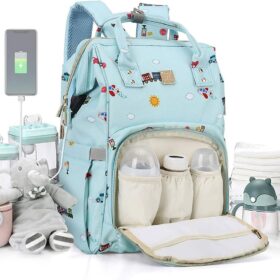 Diaper Bags Backpack Baby Bag for Mom Dad Baby Girls Boy, Cute Mult Diaper Nappy Bag Travel Back Pack,Waterproof Maternity Changing Bag Baby Stuff with USB Charging Port Stroller Straps Large Blue