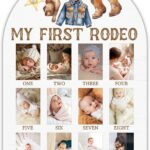 My First Year Photo Board, My First Rodeo Baby Milestone Signs for Boys Girls Nursery Decor, 12 Month Wooden Picture Board for 2×3 Photos, Best Babies Keepsake Gifts-A06