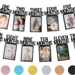 PartyHooman 1st Birthday Photo Banner for Baby – Newborn to 12 Months, First Birthday Decorations Girl or Boy Monthly Milestones Garland | 1 Year Old Party | Pre-strung With Pictures Frame (Black)