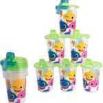 The First Years Take & Toss Pinkfong Baby Shark Sippy Cups – Reusable Toddlers Cups with Lids – Kids Party Pack with 2 Travel Caps – 10 Oz – 10 Count